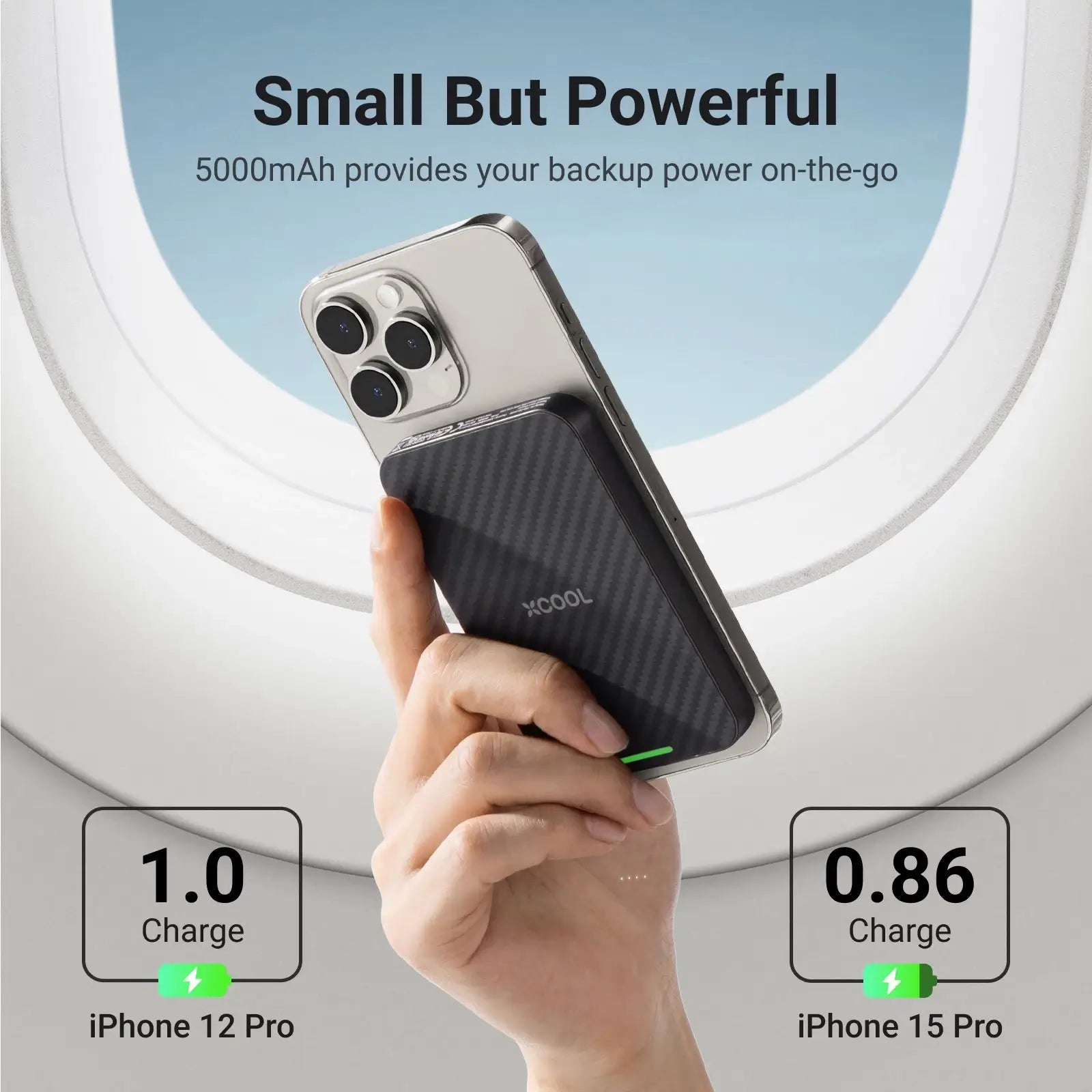 | @Specs Capacity: 5000mAh/3.85V/19.25Wh Type-C input: 5V/3A, 9V/2.2A, 12V/1.67A Type-C output: 5V/3A, 9V/2.2A, 12V/1.67A Wireless charging output: 5w/7.5w/10w/15w Dimensions: 4.0*2.7*0.3 inches Weight: 0.28lb (Mirror), 0.25lb (Kevlar) Wireless charging compatibility: This device is compatible with all Qi-enabled devices. MagSafe wireless charging is supported for iPhone 12 and above models and for Android devices that are compatible with the MagSafe standard. For non-MagSafe compatible Qi-enabled phones, a magnetic ring or magnetic case can be used for MagSafe charging. |